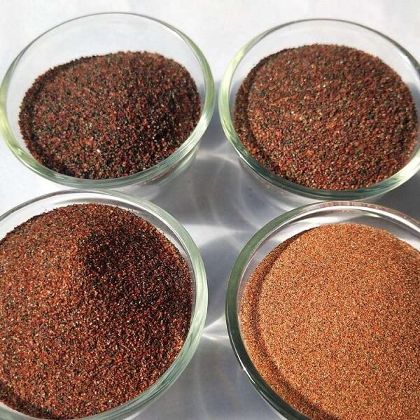 Selon la couleur, il y a du sable grenat rouge, du sable grenat rose, du sable grenat brun et du sable grenat vert.